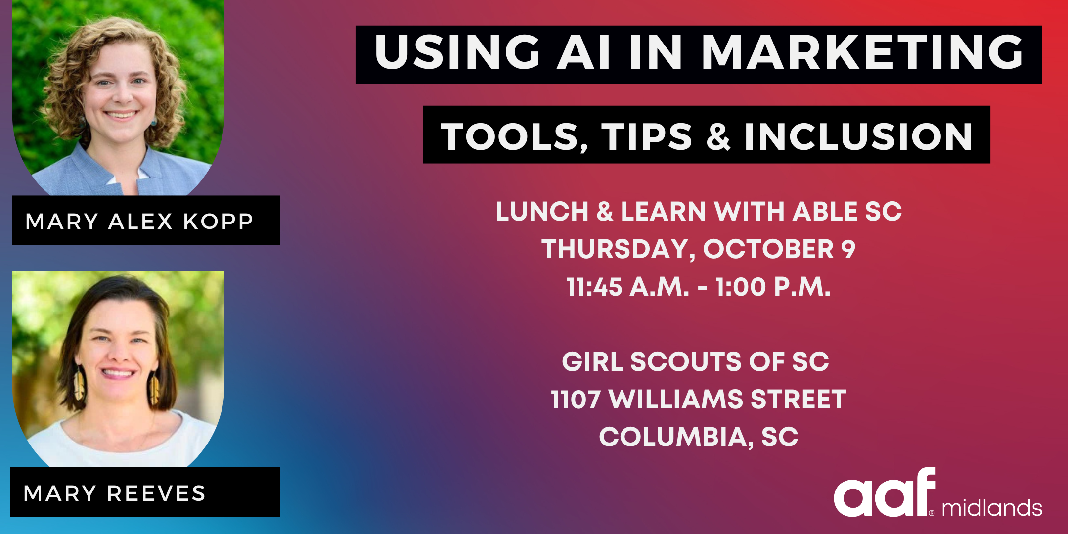 Artificial Intelligence is a powerful tool for marketers—but without care, it can create barriers instead of breaking them down. At this luncheon, learn how AI is already being used to advance accessibility, foster inclusivity, and reimagine the future of marketing.